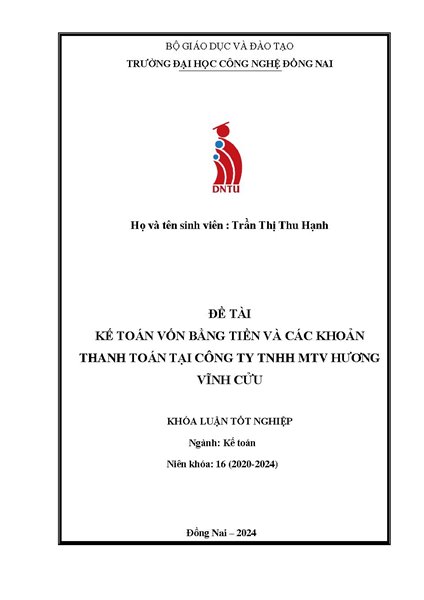 Kế toán vốn bằng tiền và các khoản thanh toán tại công ty TNHH MTV Lương Nhật Anh